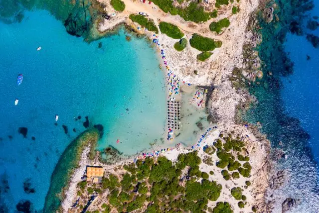 קיאיה (Chia) ממוקמת מערבית לקליארי (Cagliari) ונחשבת לאחת הפנינים של הדרום. כאן הדיונות הזהובות מתרוממות מעל החוף ומעניקות תחושת טבע פראי אמיתי. המים צלולים במיוחד, והמעבר בין כחול כהה לירקרק יוצר עומק ויזואלי מרשים.